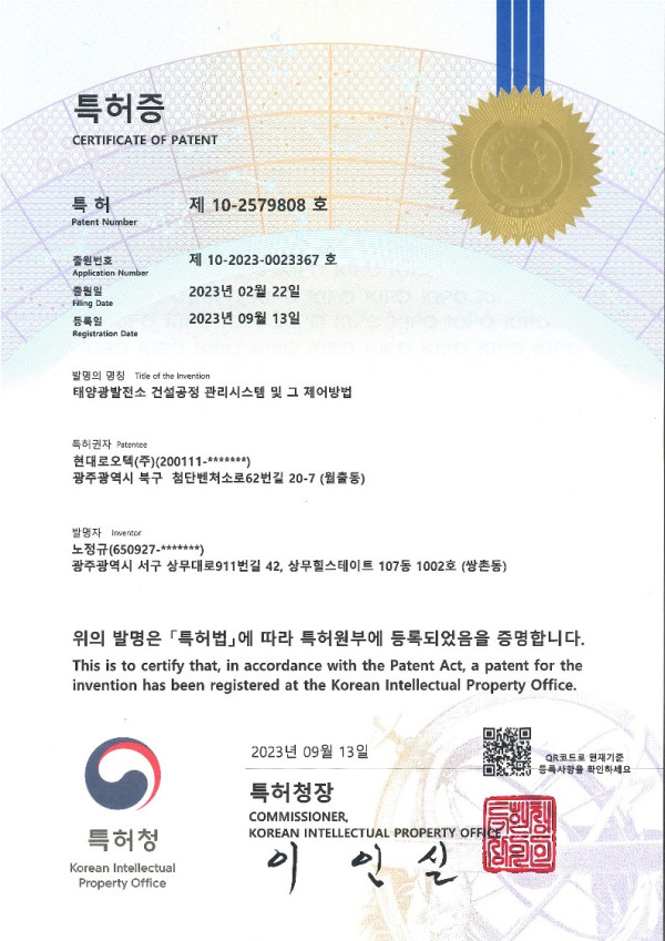 태양광발전소 건설공정 관리시스템 및 제어방법 특허 > 산업재산권현황