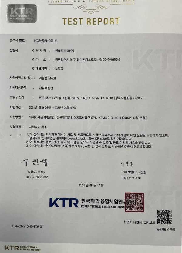 형식승인 저압배전반 시험결과지