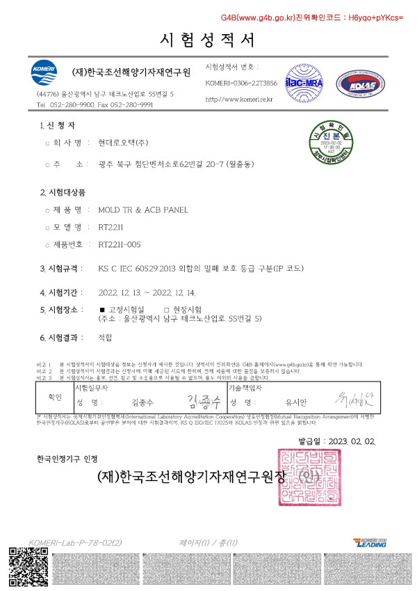 형식승인 MOLE TR & ACB PANEL 시험성적서