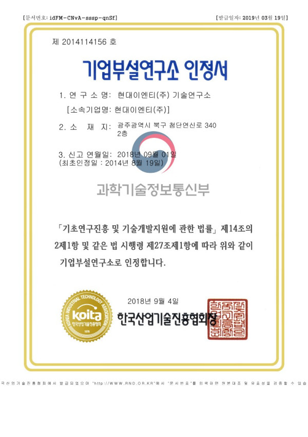 인증서 기업 부설 연구소