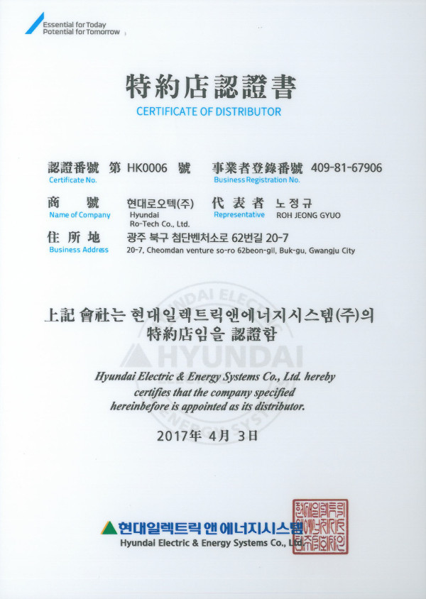 인증서 일렉트릭 앤 에너지 특약점 인증서